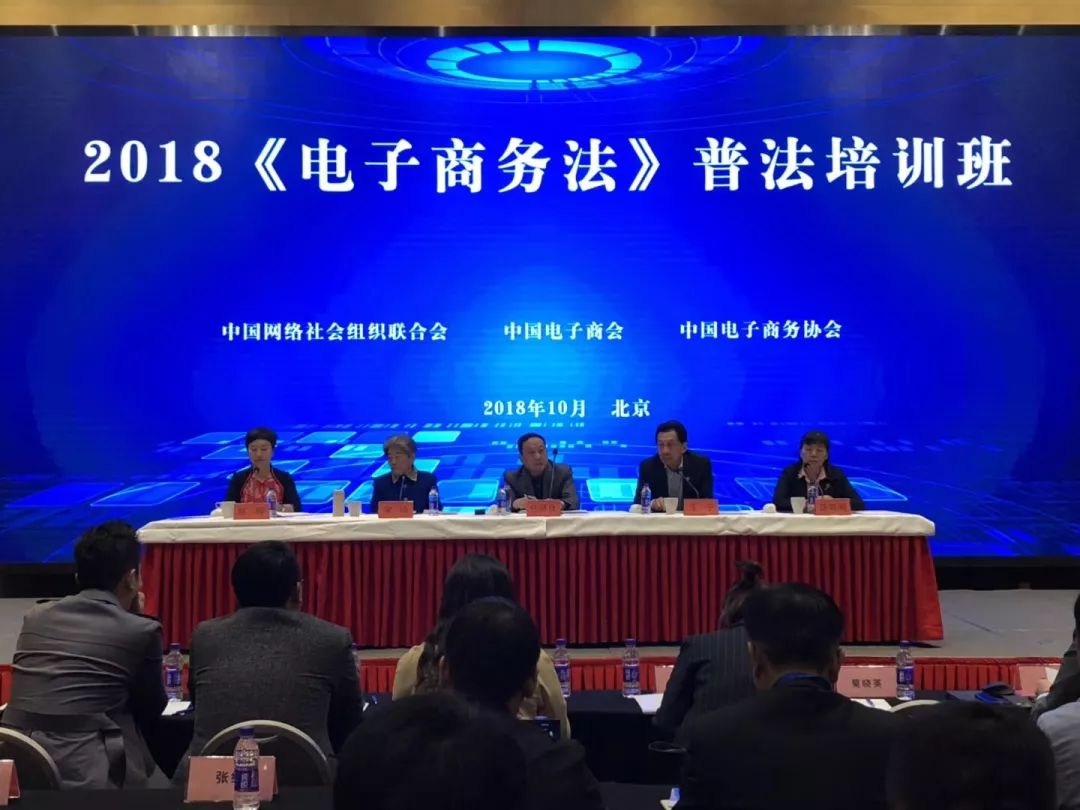 2018《电子商务法》普法培训班开班仪式10月17日上午在京举行。全国人大社会建设委员会副主任委员、中国网络社会组织联合会会长任贤良、中国电子商会会长王宁、中国电子商务协会会长宋玲、国家市场监管总局执法稽查局副局长路政闽等领导出席。