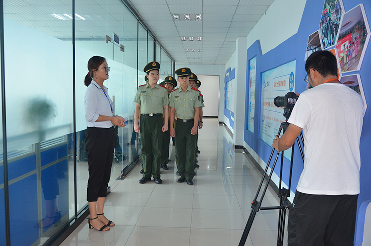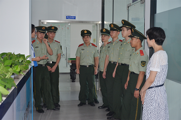 2019年8月27日,安徽省滁州市武警支队队员在科创中心园区领导的带领下,来到安徽悦来悦好电子商务有限公司进行考察。悦来悦好公司人事部主管张大丽对他们的到来表示热烈欢迎。