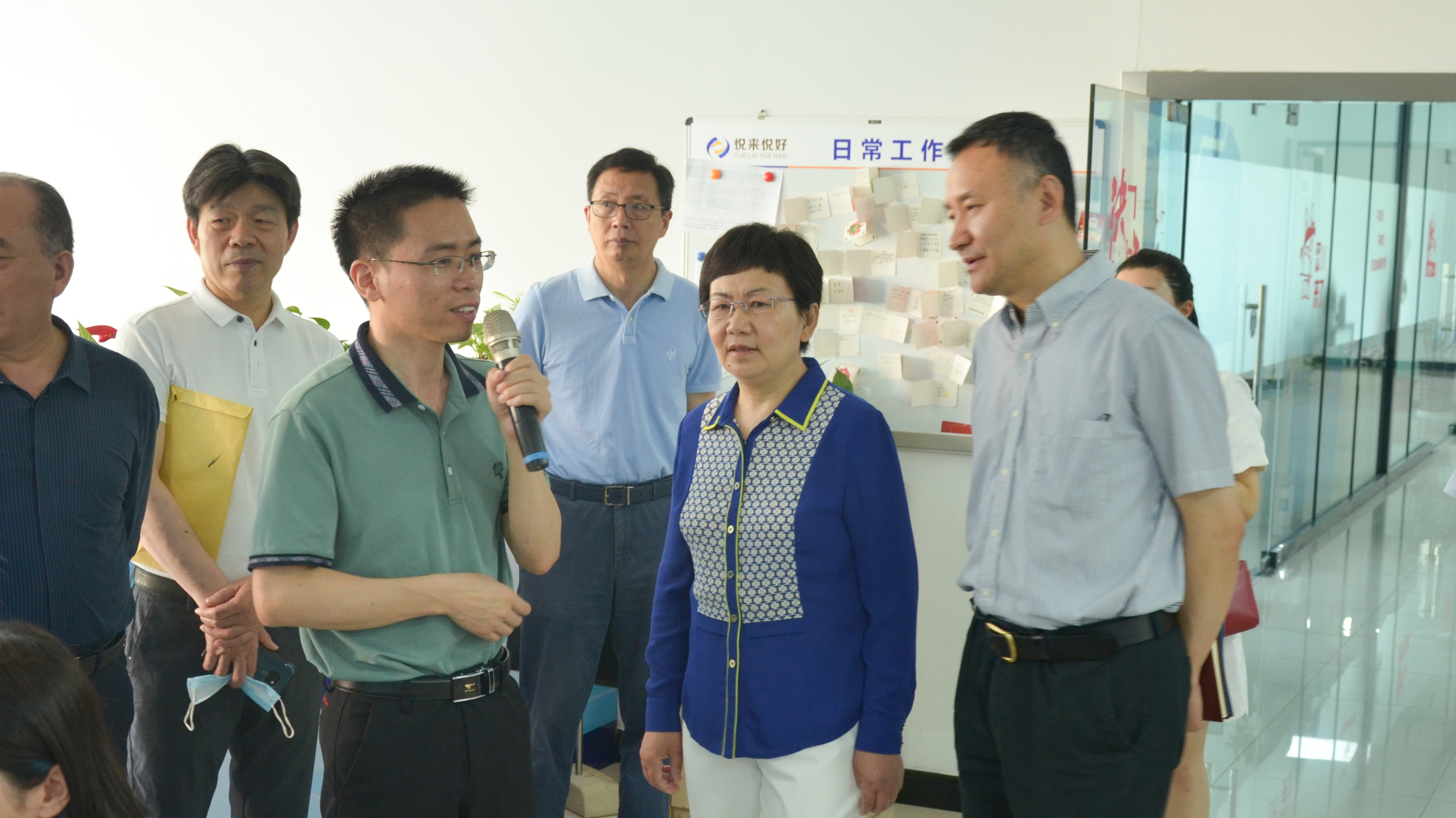 2021年6月1日上午,滁州市人大常委会副主任查镜波、市科技局党组书记王燕永一行11人莅临安徽悦来悦好电子商务有限公司,对公司科技创新赋能产业发展情况展开调研。悦来悦好董事长吴强顺热情接待了到访领导。