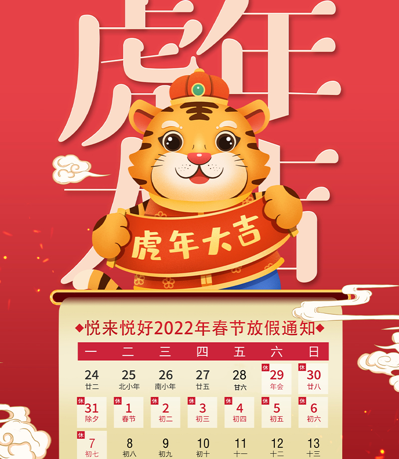 安徽悦来悦好公司2022年春节及公司年会放假通知