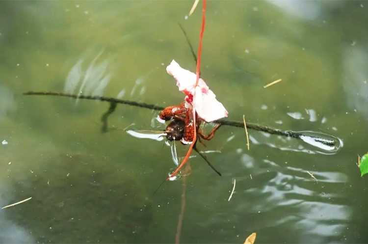到达小龙虾垂钓场后,悦家人小伙伴根据地势水位,各自选好位置,随后调整钓具,准备钓饵,一切准备工作就绪后,就开始抛竿了,随后双眼紧盯诱饵,等诱饵沉到水底,待虾咬住诱饵,等待几秒慢慢提竿,就可以抓虾入桶了!