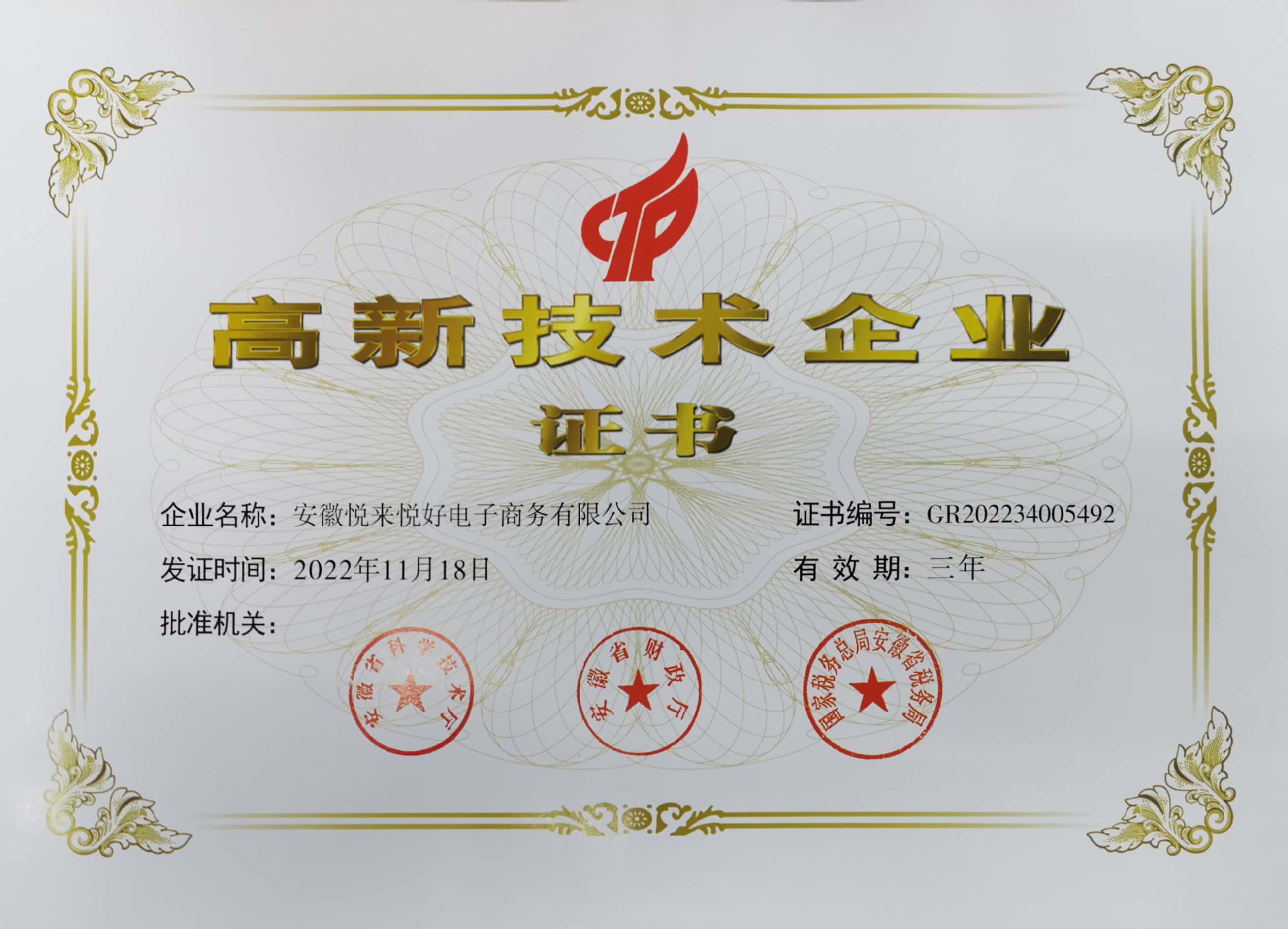 高新技术企业证书