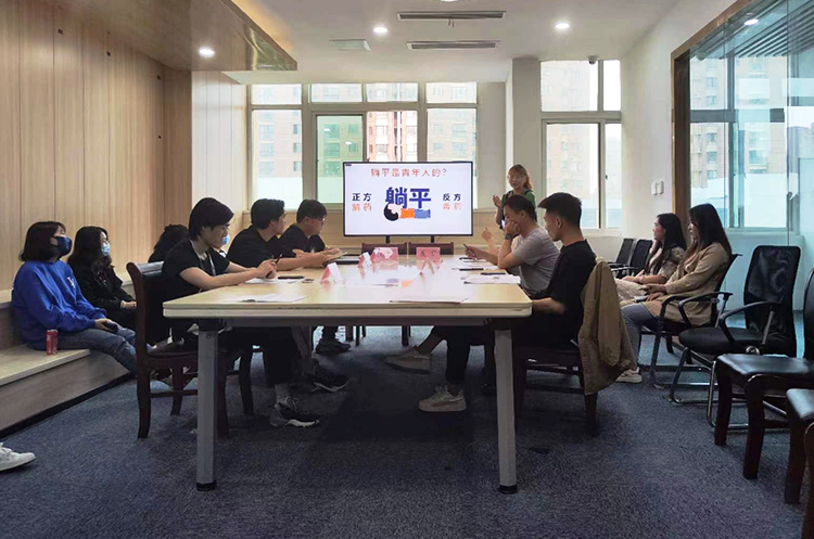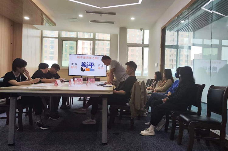 随着正方一辩开始陈述观点,一场激烈的唇枪舌战争夺赛正式开始。正方认为“躺平”是青年人的解药。躺平是指人们降低欲望,用相对舒适的工作方式来换取足够的生活条件。时代的“内卷”带来了许多人们求而不得的事,“躺平”则能够让人提高幸福感。