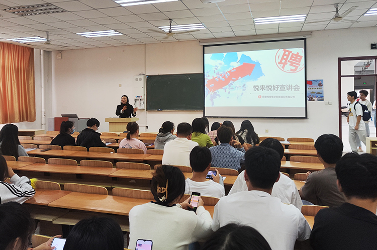 2023年11月3日下午,安徽悦来悦好科技股份有限公司携手滁州职业技术学院商学院共同举办了一场电商宣讲会,悦来悦好人资部主管宋香出席宣讲,向同学们介绍了公司规模、工作流程、工资待遇与福利等,并深入浅出地阐述了悦来悦好公司的发展历程。