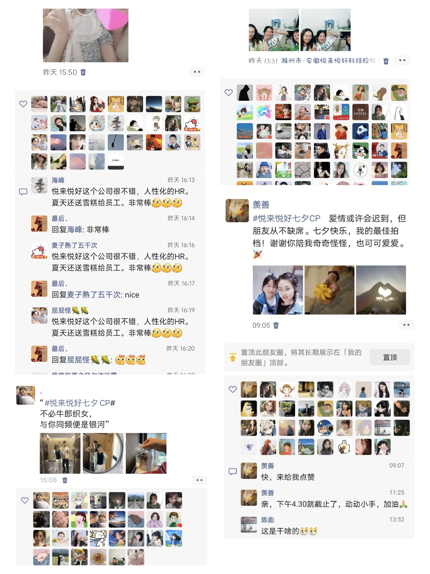 活动期间,朋友圈被各种“神仙 CP”刷屏。有夫妻档的温馨对视、兄弟情的搞怪合拍、闺蜜趴的亲密相拥,还有悦来悦好员工组成的特别搭档“干饭搭子”、“上班搭子”。大家用镜头记录着彼此的美好瞬间。无论是“怨种搭档相爱相杀”的趣味配文,还是“与你同频便是银河”的文艺表白,字里行间都充满了真挚的情感。