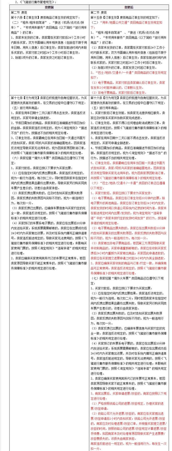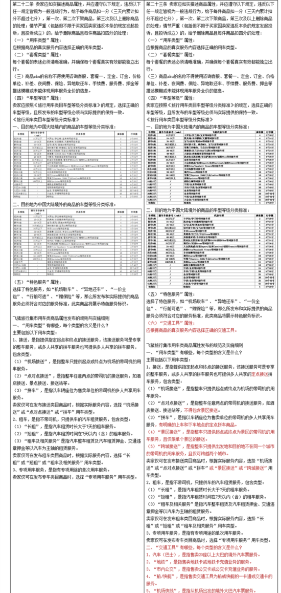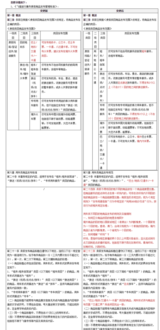 3、修订《飞猪旅行集市管理规范》用车的相关规定: