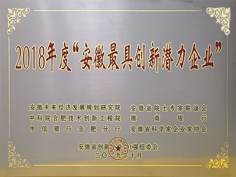 2018年度安徽最具创新潜力企业