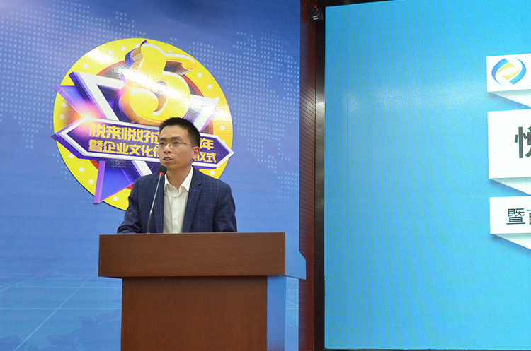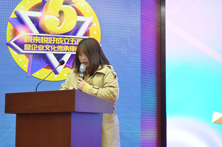会议的结尾,公司邀请了工作满三周年的部分同事悦千凝、悦南乔两位员工代表分享了她们这三年来的感触,把她们所继承的企业文化传递给接下来的更多的家人们。