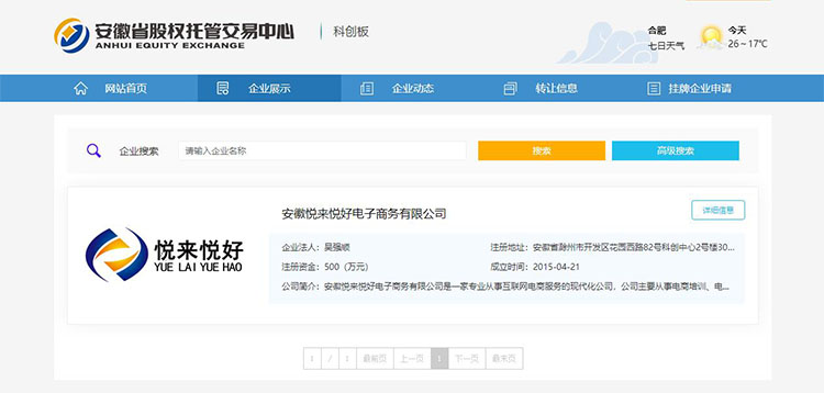 2020年4月,安徽悦来悦好电子商务有限公司顺利通过审查,在安徽省股权托管交易中心科技创新专版基础层正式挂牌。证券代码:613591。