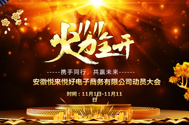 2020年10月30日,安徽悦来悦好电子商务有限公司双十一动员大会隆重召开。公司所有家人齐聚一堂,培训讲师悦享容主持了本次大会,在现场雷鸣般的掌声和欢呼声中,悦来悦好双十一大战正式打响!
