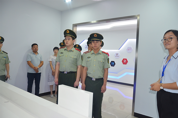 2019年8月27日,安徽省滁州市武警支队队员在科创中心园区领导的带领下,来到安徽悦来悦好电子商务有限公司进行考察。悦来悦好公司人事部主管张大丽对他们的到来表示热烈欢迎。