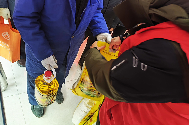 凛冽的寒风挡不住送关怀的脚步,隆冬的严寒冷却不了一颗送温暖的心。领到慰问品的张伯伯高兴地说:“非常感谢领导和志愿者对我们的关心,还给我们送来新年的礼物,我心里感激不尽,你们的惦记让我感觉太温暖了。”