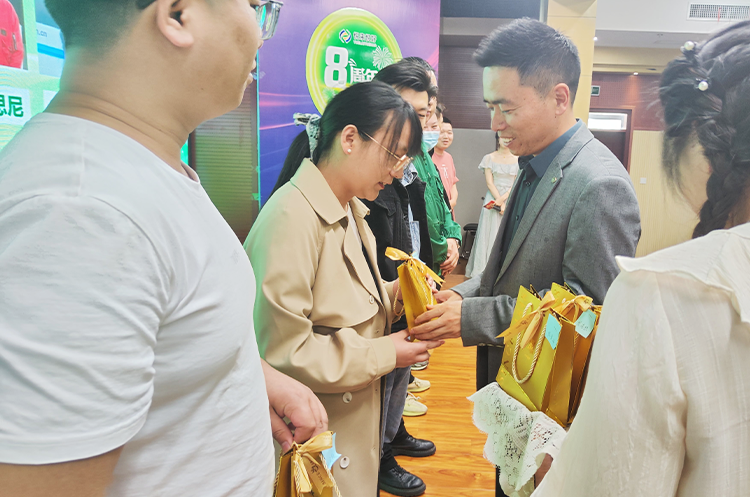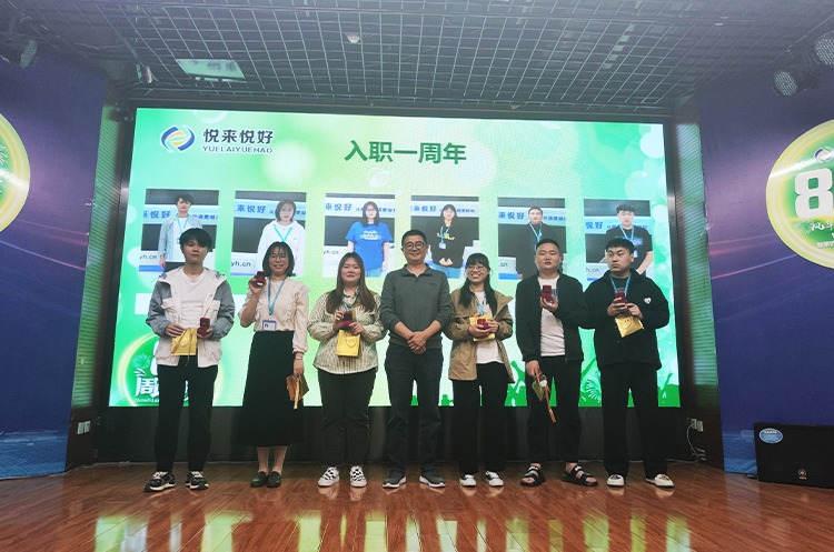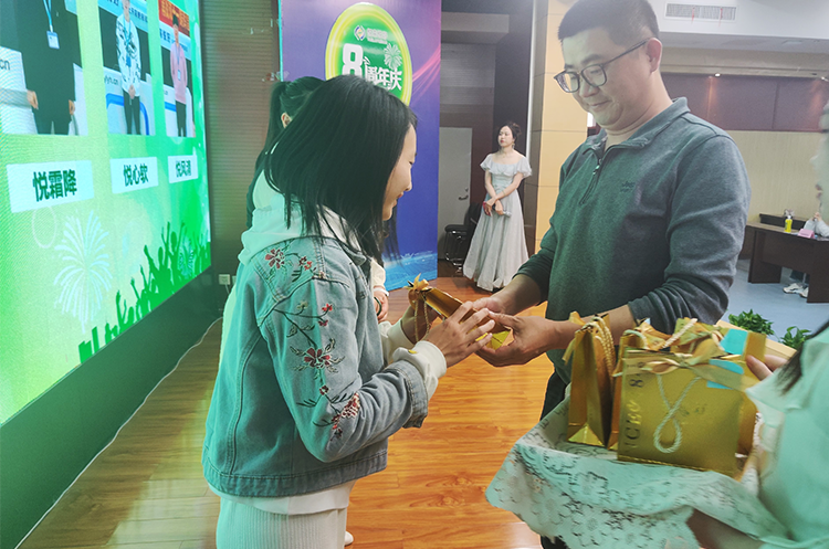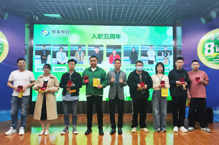 接下来就到了本次活动最受期待的一个环节:为了感谢那些坚守在各自岗位上兢兢业业,默默耕耘的家人们为公司发展作出的巨大贡献,公司特于悦来悦好成立八周年之际,对入司一周年、三周年、五周年的员工送上一枚专属定制的首饰品。