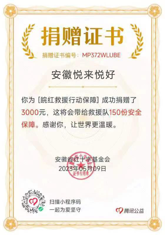滴水凝善意,携手聚温暖。5月8日是世界红十字日,为了纪念第76个“5·8世界红十字日”,弘扬“人道、博爱、奉献”的红十字精神,我司积极参加“5·8人道公益日”众筹活动,通过安徽省红十字基金会向皖红救援行动保障项目捐赠3000元。