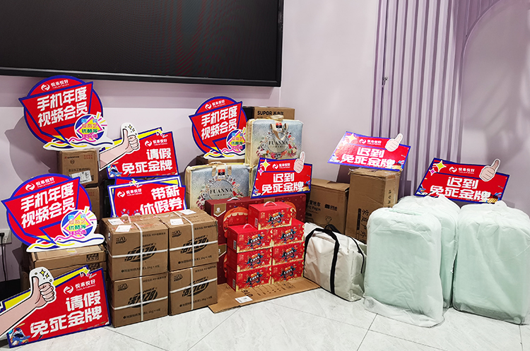 无抽奖,不年会。在精彩的节目中间穿插了抽奖环节,点燃了每位悦家人的热情。华为笔记本电脑、现金红包、苏泊尔电火锅、飞利浦电动剃须刀、米面油三件套、带薪休假券和请假免死金牌等各种好礼令人眼花缭乱,引得现场欢呼声不断!