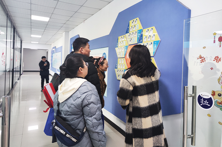 随后,来到了企业文化走廊。这里挂满了企业文化标语和员工风采,展现了公司的精神风貌和员工的积极面貌。宋主管向考察团介绍了公司的企业文化和发展理念,强调了公司以人为本、注重员工成长的管理理念。