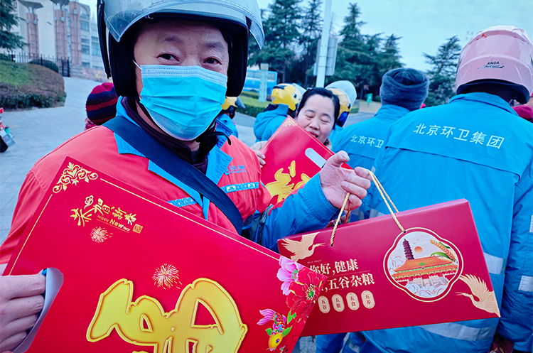 活动最后,志愿者为环卫工人发放了五谷杂粮礼盒和春联等物品,在为环卫工人送去温暖的同时,叮嘱环卫工人做好防寒保暖,保重身体,并向他们致以崇高敬意和衷心感谢。