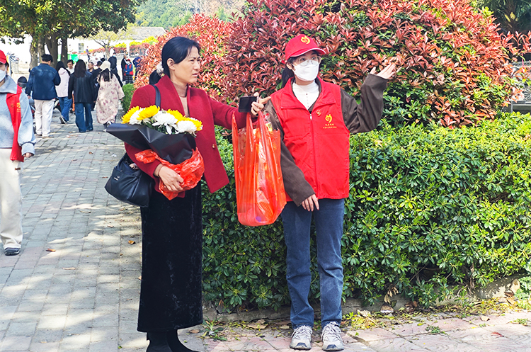 在公墓入口及周边重点路段,他们协助交警和管理处工作人员,耐心有序地引导车辆通行、规范停放;在人流集中区域,他们细心提醒大家注意安全,倡导文明、绿色、低碳的祭扫方式,用实际行动传递“文明祭祀”的新风尚。