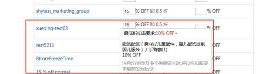 第一、满足各行业最低类目折扣要求(分组内有多个类目,将以折扣率要求高的为准(示意图如下所示),请以卖家后台设置处显示为准即可):